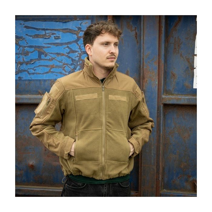 Fostex KSK commando fleece vest combatstijl voor dames en heren in de kleur khaki. Het commando special forces style fleece vest heeft twee zakken aan de voorkant met afsluitbare ritsen en klittenband voor het bevestigen van extra emblemen. Op beide mouwen zijn extra met ritsen afsluitbare zakken voor het meenemen van extra materiaal en klittenband voor het bevestigen van extra emblemen. Onder beide oksels zit een rits voor extra ventilatie. Tevens is dit vest voorzien van elastisch koord met lockers voor de taille voor een optimale pasvorm. Het Tactical vest is voorzien van degelijke metalen YKK ritssluitingen tot onder de kin. Het vest is gemaakt van 100% fleece polyester en zeer eenvoudig te reinigen. Het vest is heerlijk om te dragen en uitermate geschikt voor buiten in de tuin, op de camping, voor scouting, survival, paintball of airsoft activiteiten. NB. De fleece vesten voor buiten hebben een strak passende fit maar bestel een maatje groter dan je denkt als dat nodig is.