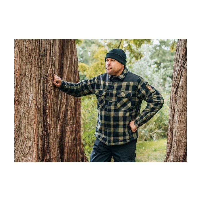 Zoek je een comfortabele trendy outdoorjas, dan is het houthakkers jack model sherpa van het bekende merk Fostex de ideale buitenjas. De stevige buiten jas heeft een warme sherpa voering en draagt comfortabel. De buitenjas heeft schouder versteviging, twee steekzakken, twee klepzakken en een binnenzak voor bijv een mobiele telefoon, een heerlijke jas om te dragen tijdens je buiten wandelingen, hike of gewoon lekker thuis.