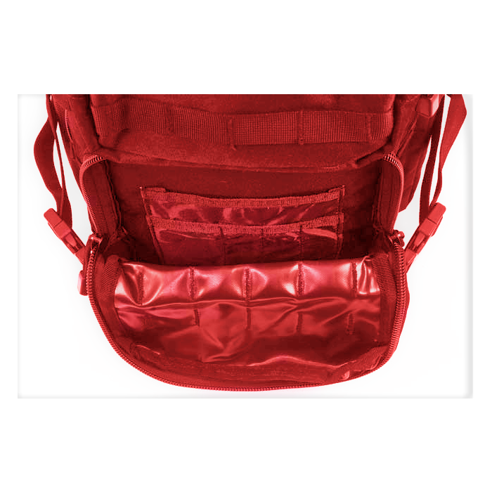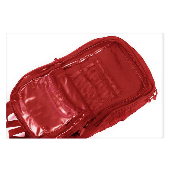 Deze Mil-Tec US army assault 36ltr army backpack in de kleur rood is de ideale rugtas voor het meenemen van veel materiaal tijdens een hike, survival, bushcraft activiteiten of tijdens het kamperen in de natuur maar ook als hulpverlening rugtas voor de brandweer, EHBO en BHV. De Mil-Tec rode rugtas is voor zowel dames als heren geschikt. De army rugtas heeft een groot vak met een dubbele ritssluiting en twee kleinere vakken met extra ritsen en fastex snelsluitingen zodat er ruim toegang is om spullen te pakken als dat nodig is. Deze rode signaal rugtas heeft aan de achterkant een extra geïntegreerde velcro opbergvak voor een hydropack (watertank) zodat u onderweg drinken kunt meenemen in een watertank. De leger rugtas is gemaakt van waterafstotend sterk 600D canvas polyester en daardoor wordt eten en drinken en materiaal goed beschermd tegen vocht en zand. Door het Molle bevestigingssysteem kunt u extra tasjes en materiaal op meerdere posities plaatsen op de rugtas . U kunt daardoor nog meer spullen meenemen als dat nodig is. De rugtas heeft voor schouder ondersteuning extra stevige ergonomische foam (EVA) schouderbescherming zodat uw schouders extra ontlast worden. Door een stevige canvasheupriem met een grote fastex snelsluiting, heeft u ook goede ondersteuning voor de rug en zorgt het geheel voor een ideale pasvorm zorgt voor onderweg.