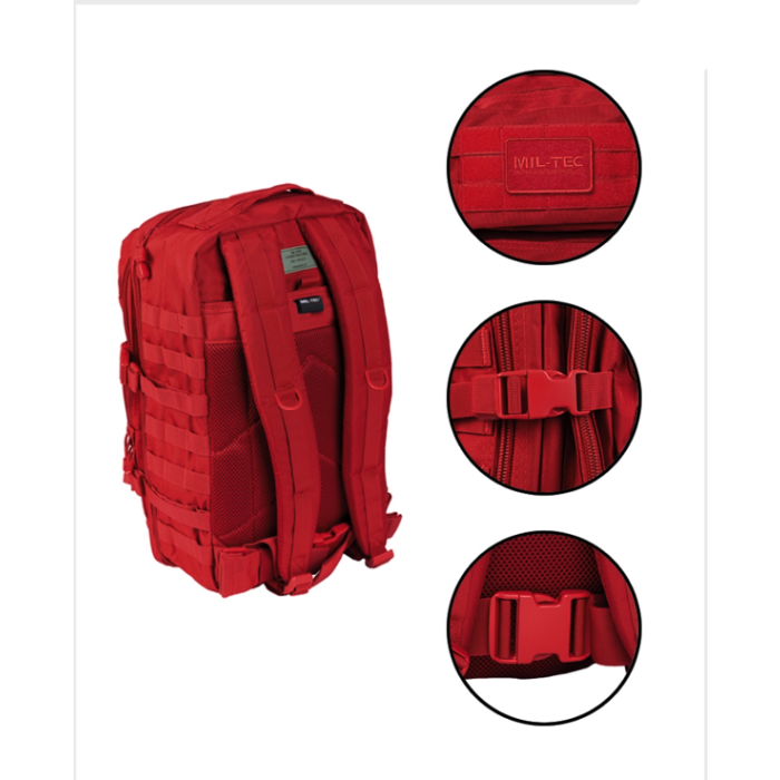 Mil-Tec US assault rugtas 36ltr in de kleur signaalrood. Als leger rugtas is er een extra velcro hydro opslagruimte voor een hydropack (watertank). Materiaal 100% sterk 600D canvas polyester. Maten 51x29x28cm. Gewicht: 1600gr. Ideaal voor naar school maar ook voor de hulpverlening zoals brandweer, EHBO en BHV.
